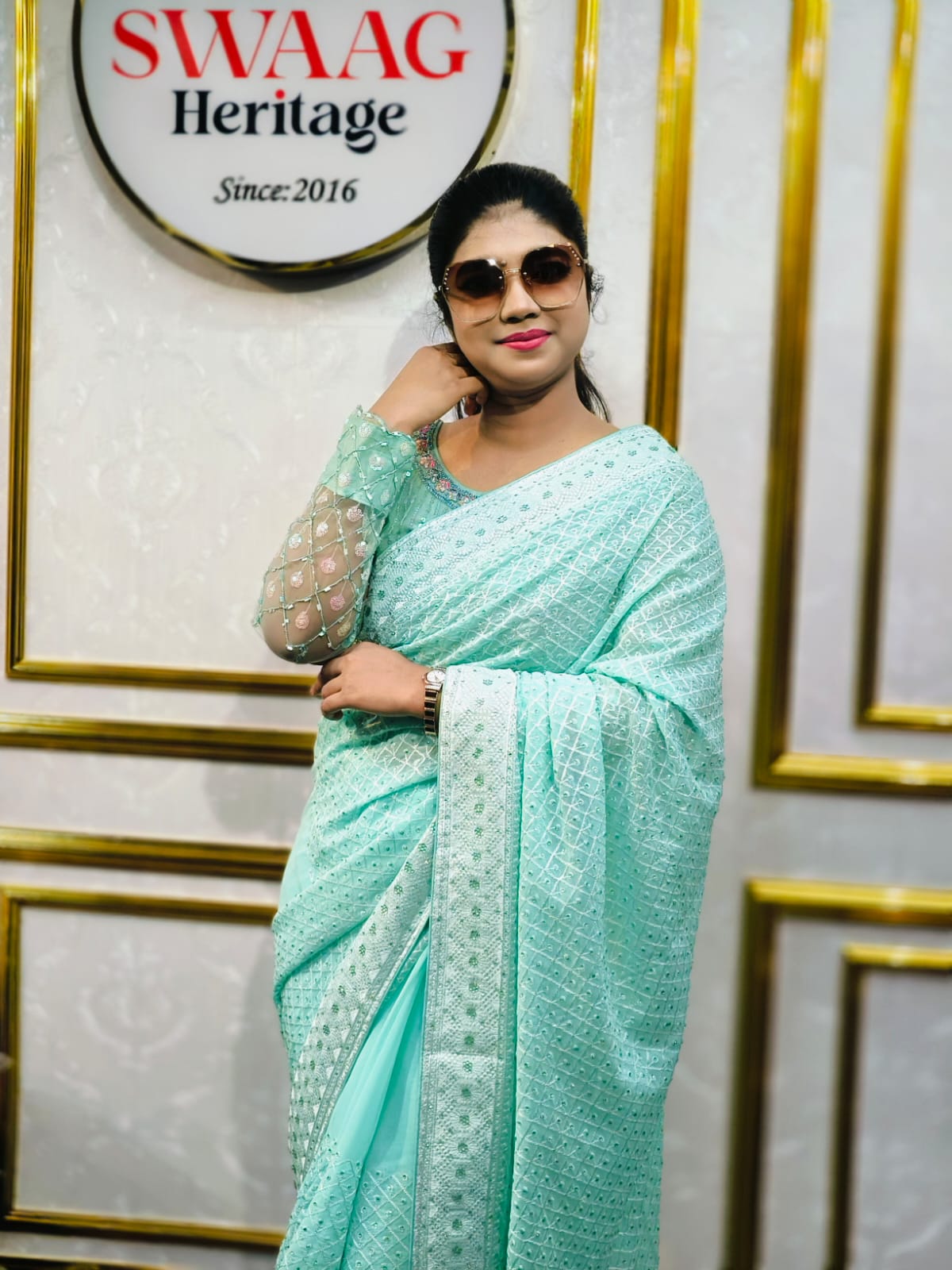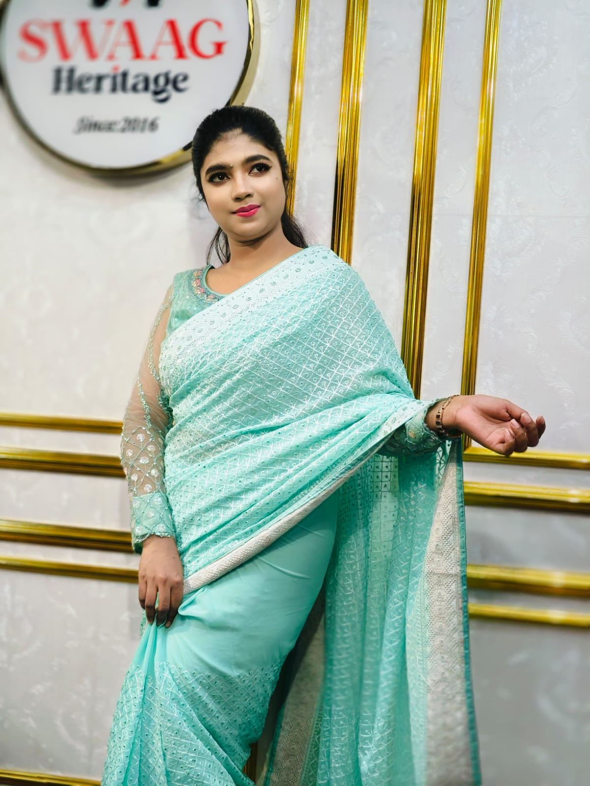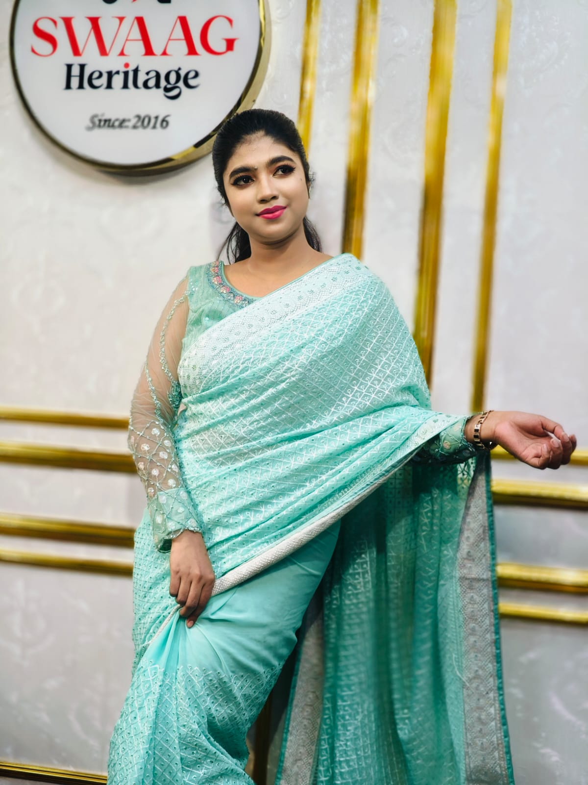 Premium & Luxury Aqua blue chiffon party wear saree