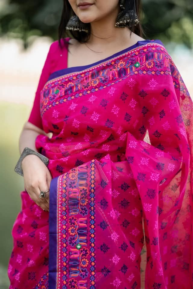 Experience timeless elegance with this beautifully designed Magenta Cotton Saree, crafted for comfort, style, and everyday wear. Made from soft, breathable cotton fabric, this saree keeps you cool and comfortable throughout the day while offering a graceful traditional look.
