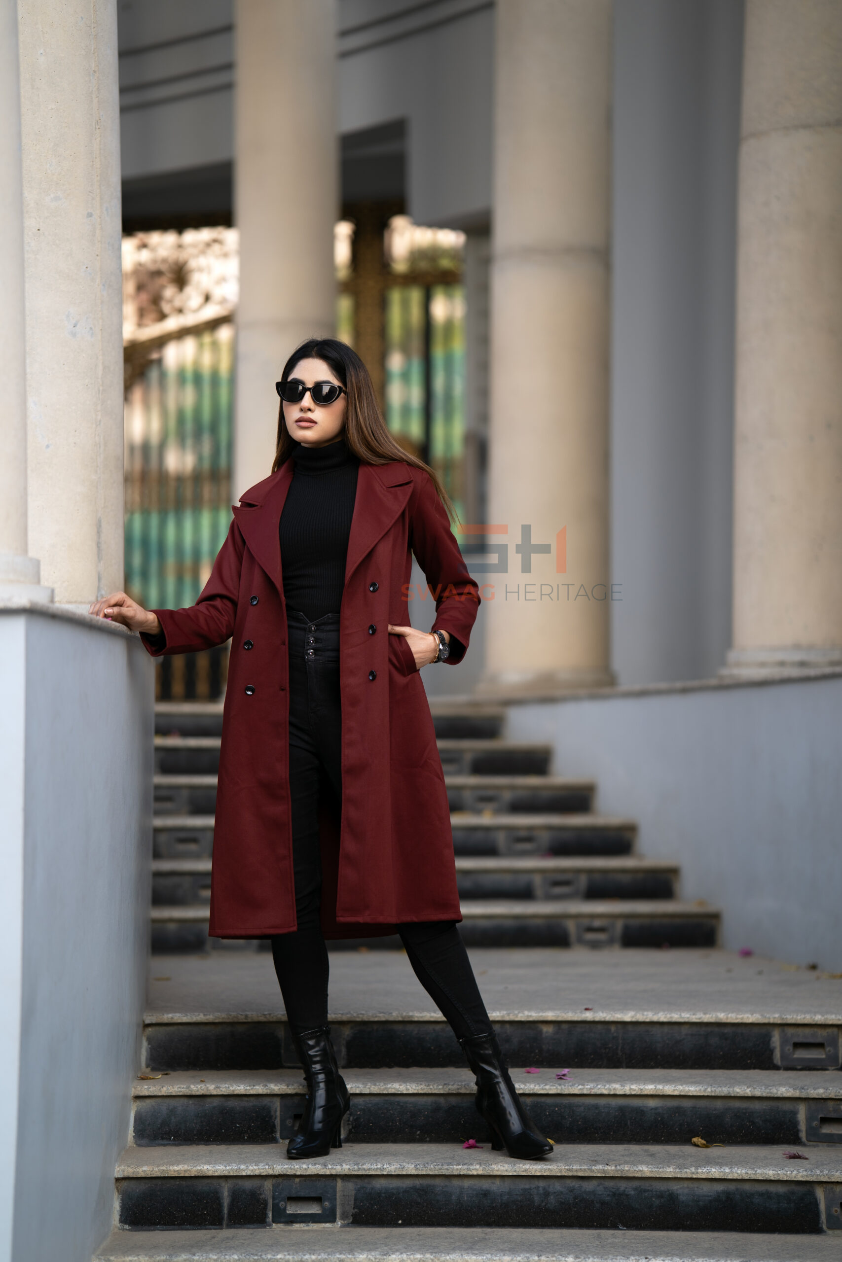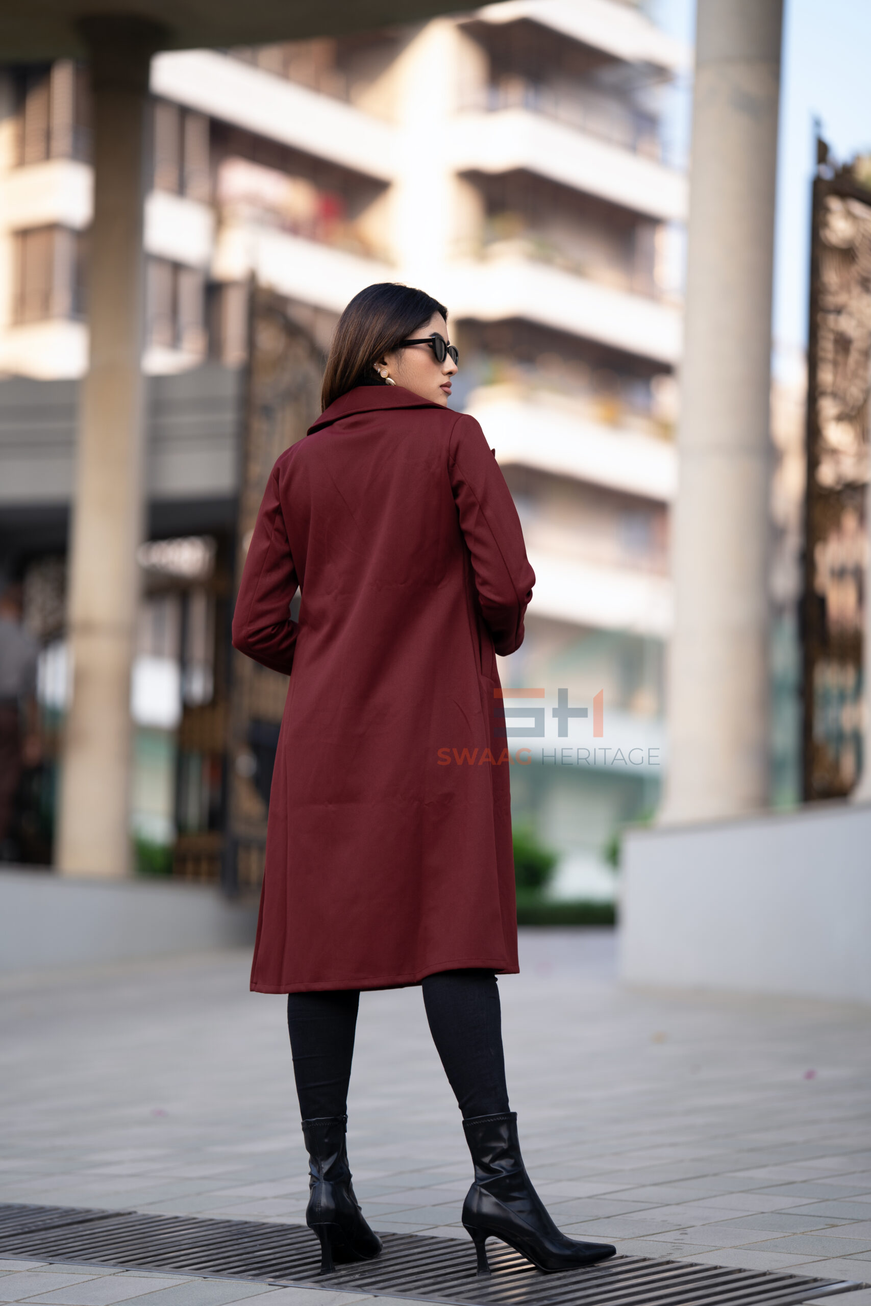Premium Maroon Double-Breasted Overcoat – SWAAG HERITAGE Exclusive