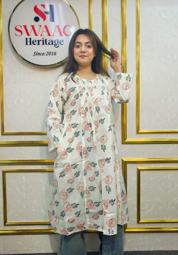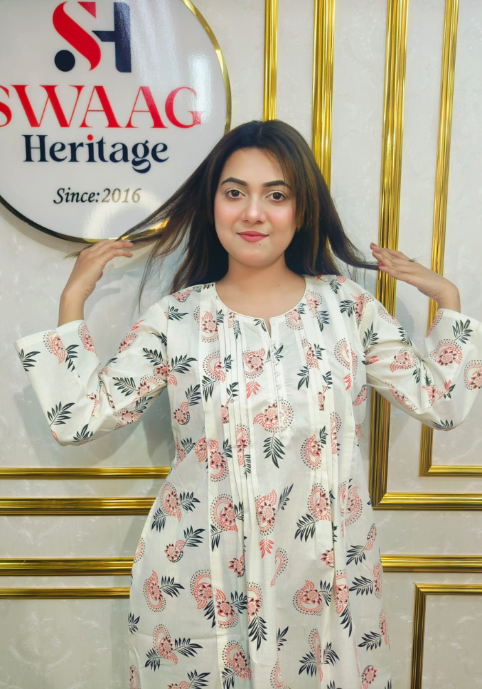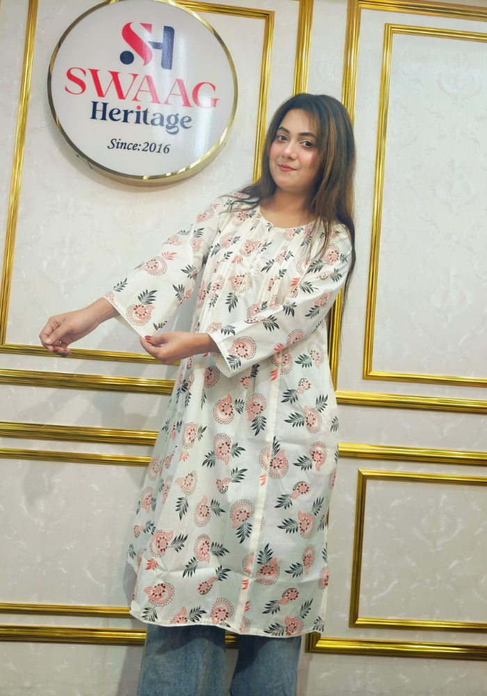 Shop boutique 1-piece kurti dress made from soft cotton with elegant Floral prints and short kamiz . Ideal for casual, festive & semi-formal wear.